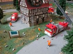 impressionen: Brennendes Haus auf der Eisenbahnanlage